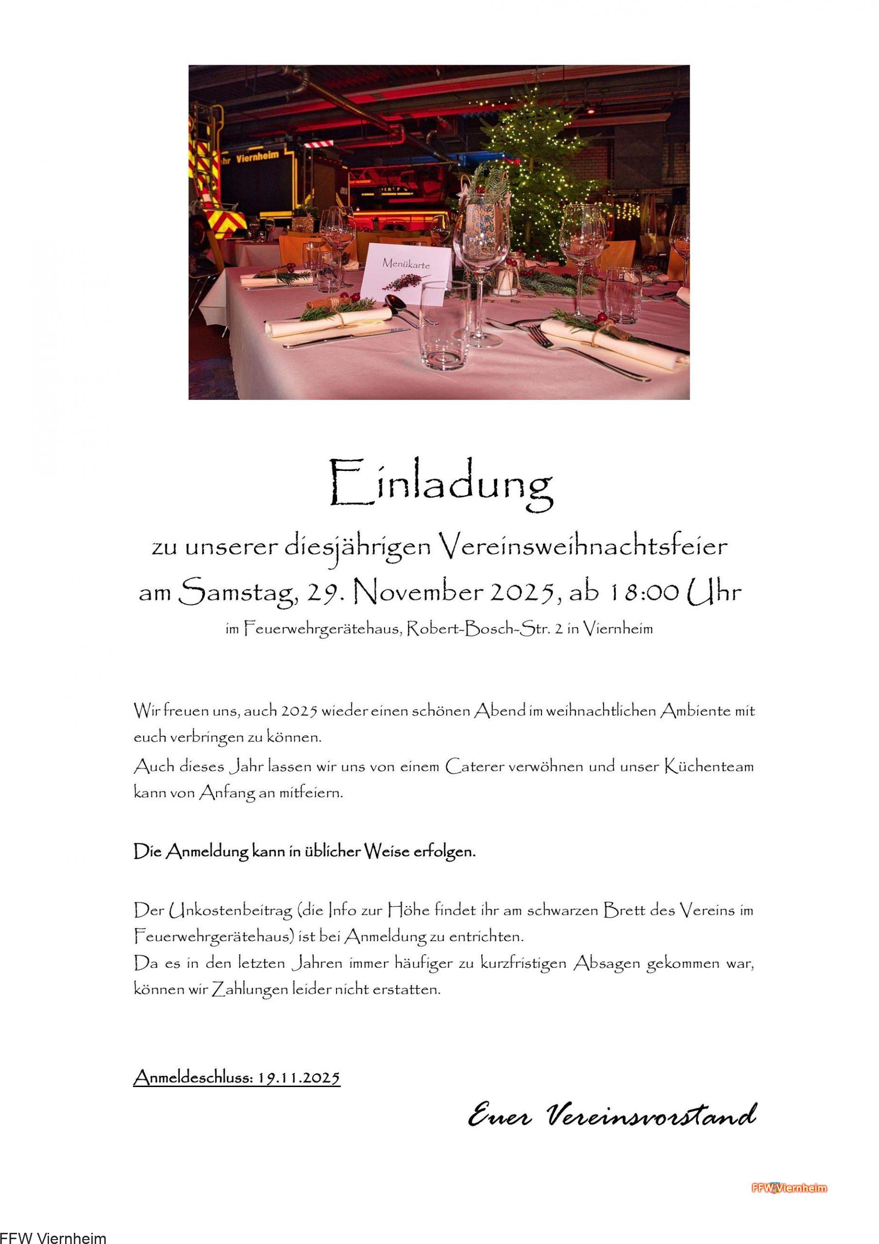 Allgemein Einladung zur Weihnachtsfeier des Fördervereins Freiwillige Feuerwehr Viernheim e.V. 4. November 20254. November 2025Lucas Haas Teilen: